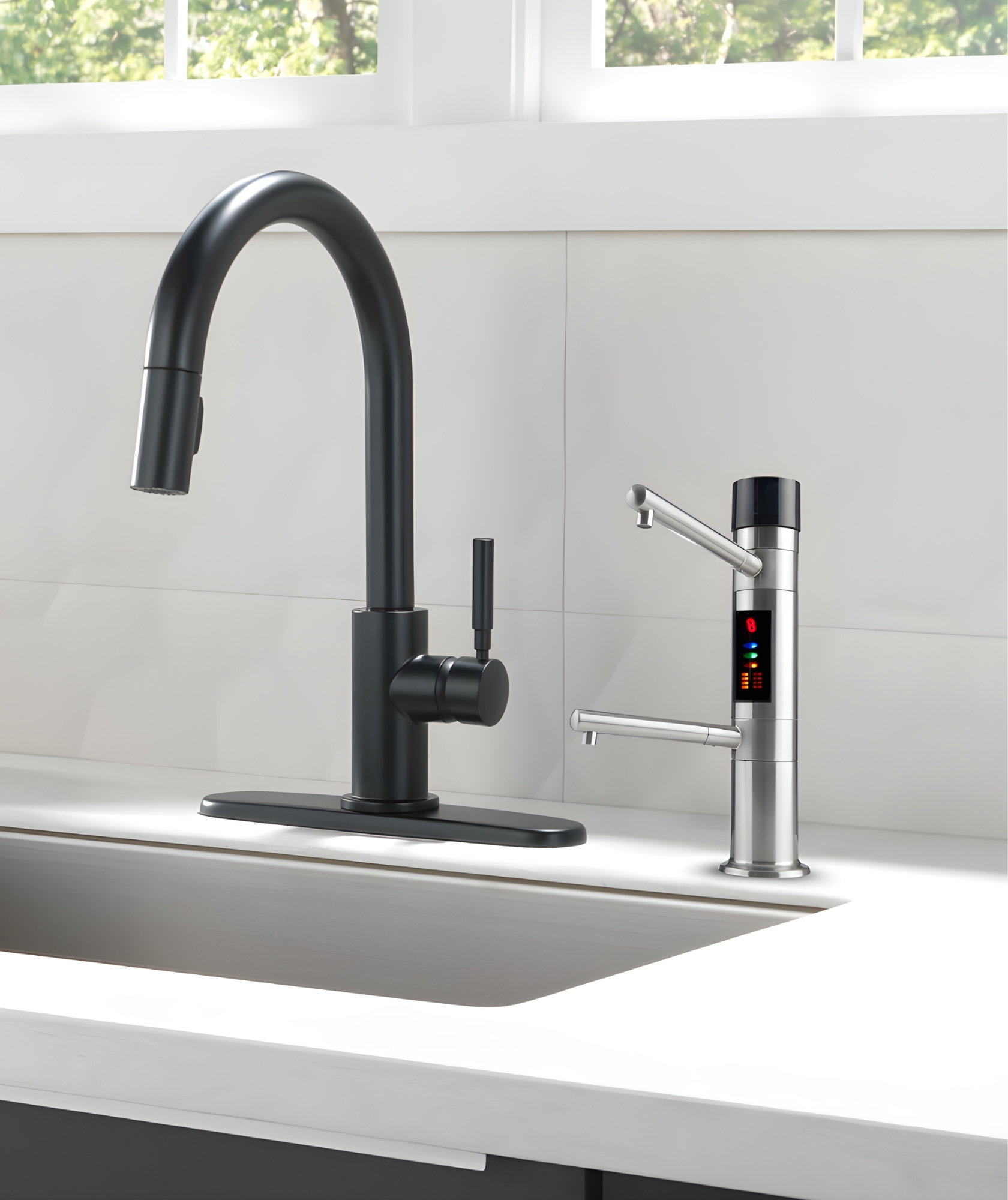 Suntem ceea ce mâncăm, dar suntem și ceea ce bem. Cu PRIME Faucet te bucuri de hidratare optimă, apă alcalină bogată în antioxidanți și confortul tehnologiei avansate, direct la chiuvetă.