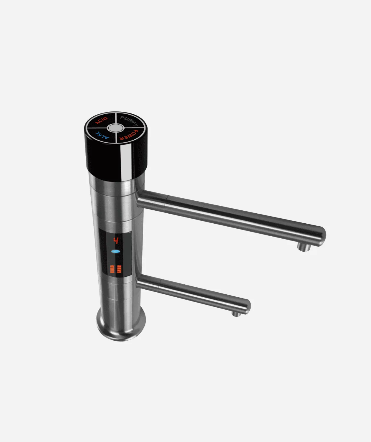 Robinetul PRIME Faucet este conceput pentru a se potrivi perfect cu orice ionizator de apă Prime montat sub chiuvetă, oferindu-ți apă alcalină, acidă sau purificată printr-o simplă atingere. Echipat cu panou tactil inteligent și display full-color, acest robinet nu doar livrează apă alcalină de calitate superioară, ci completează bucătăria cu un design elegant și compact.